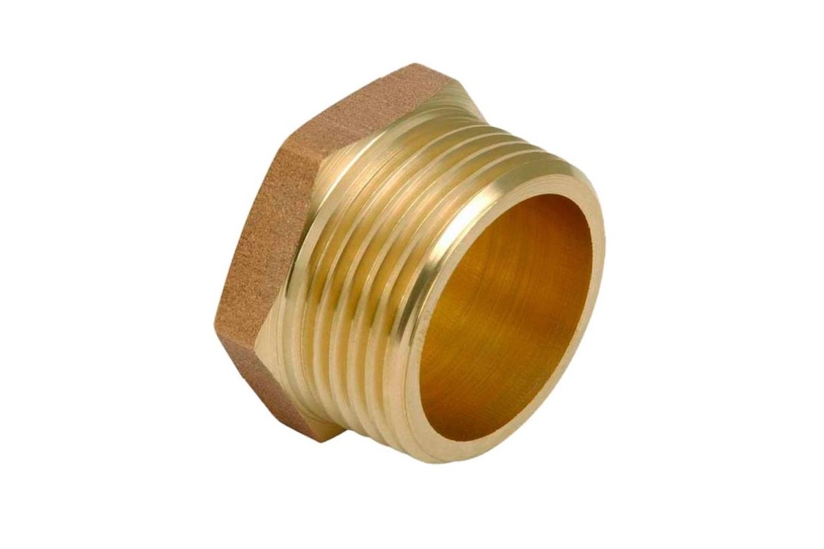 Латунный фитинг с наружной резьбой. Используется для герметичного закрытия конца трубопровода.