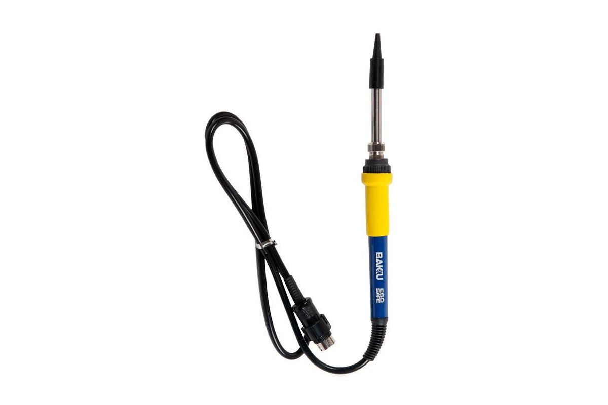 - Долговечное и прочное сменное паяльное жало, доказывая свою надежность, используется для точной пайки компонентов печатных плат, обеспечивая максимальную передачу тепла от нагревателя к наконечнику;