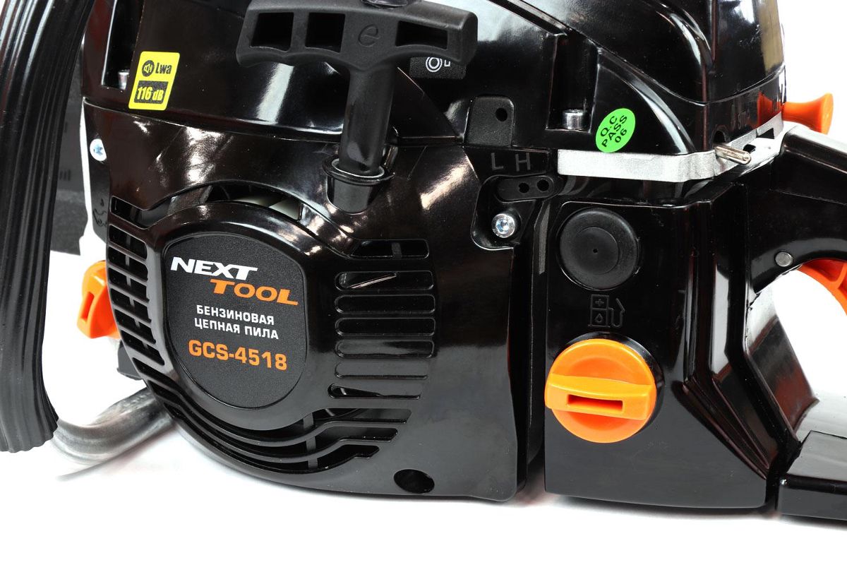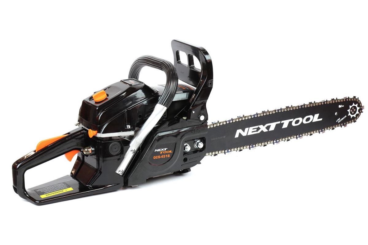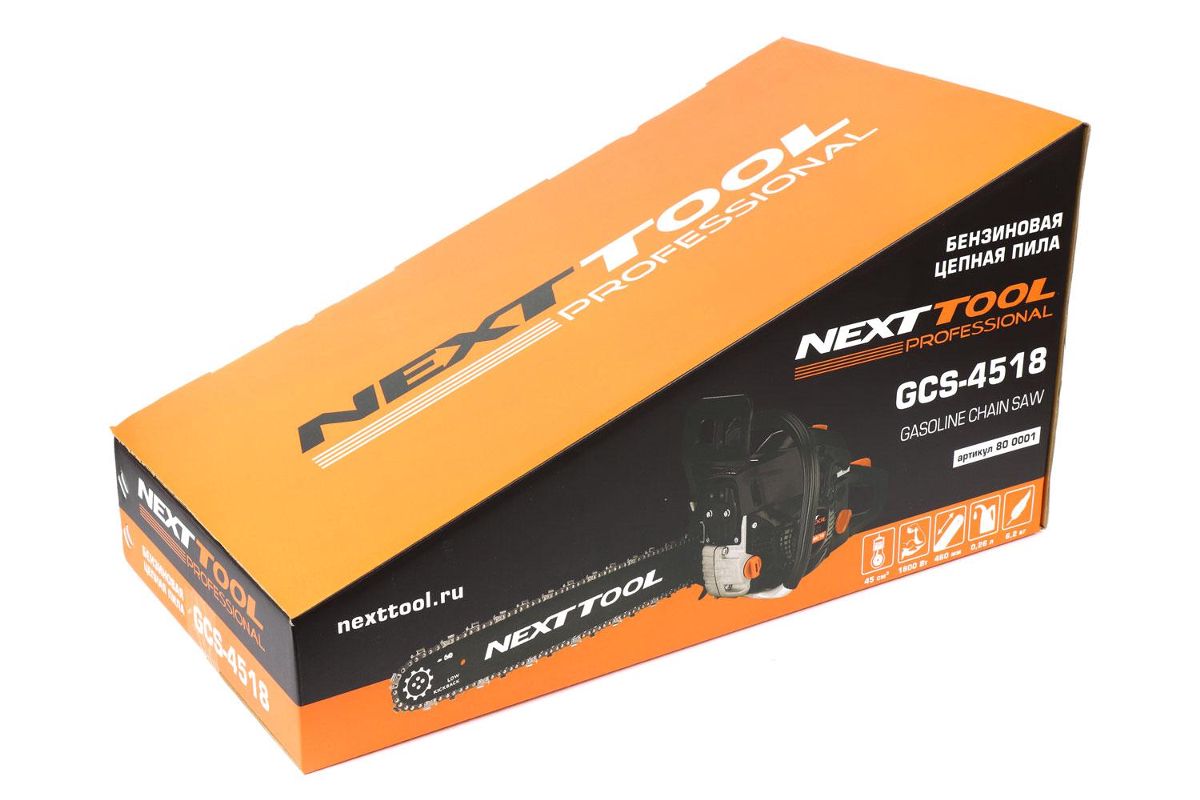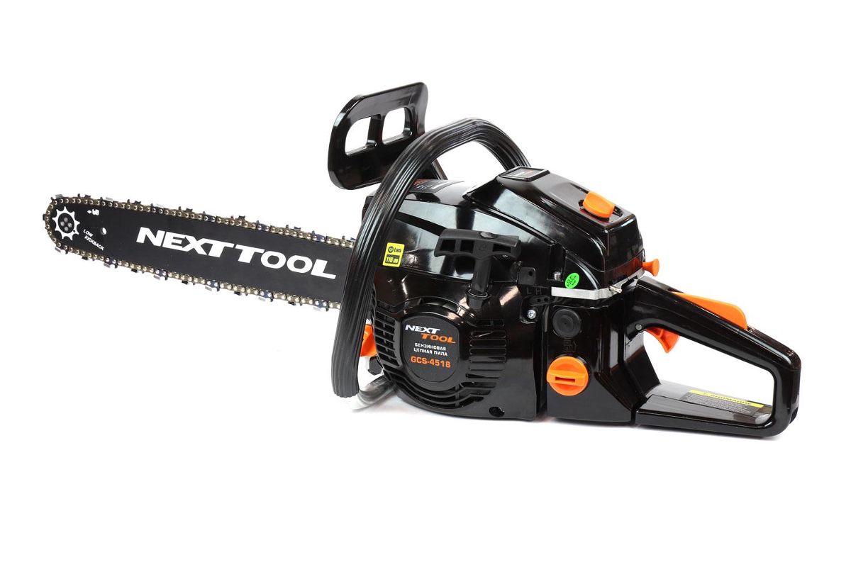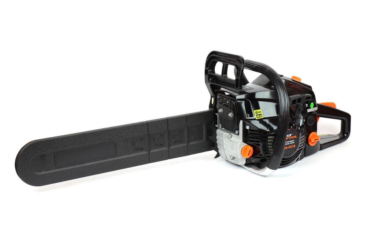 Комплектация: бензопила, направляющая шина, цепь пильная, чехол шины, ключ комбинированный, ключ шестигранный, отвертка, емкость для приготовления топливной смеси, руководство по эксплуатации, упаковка.
