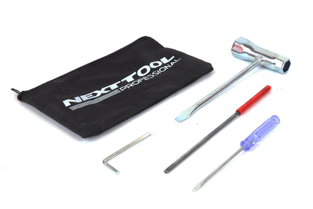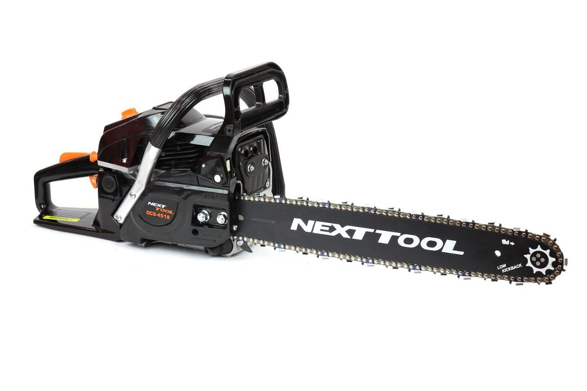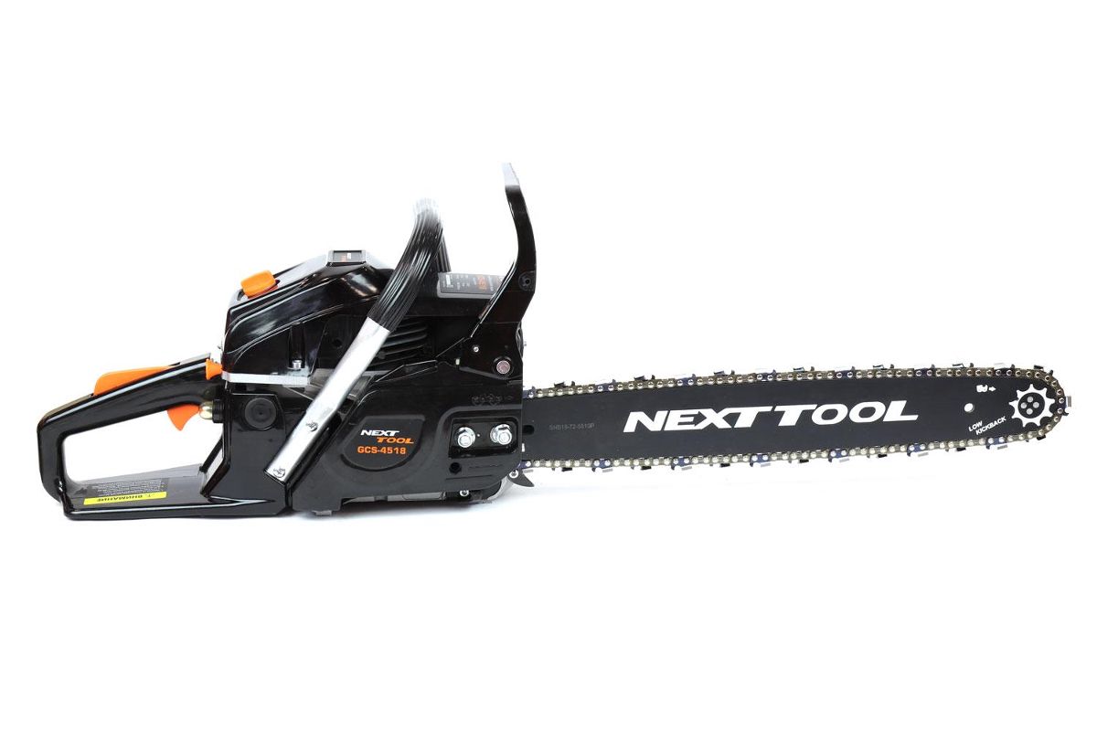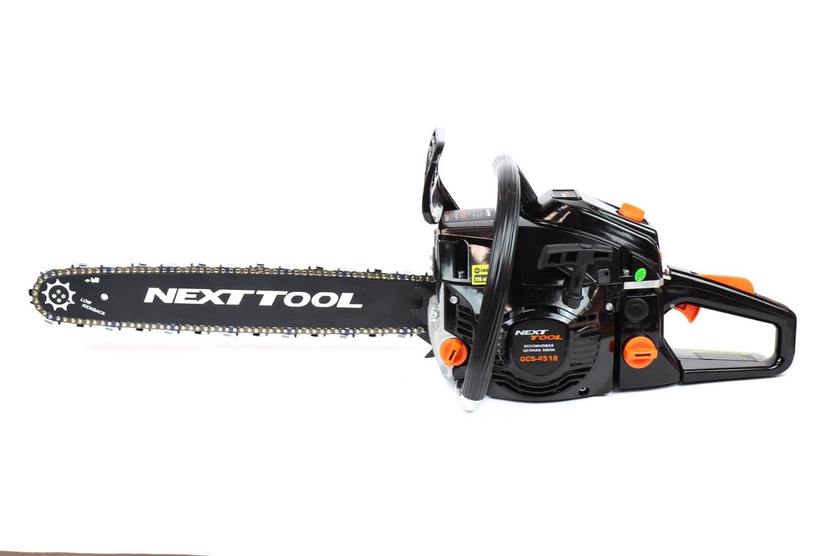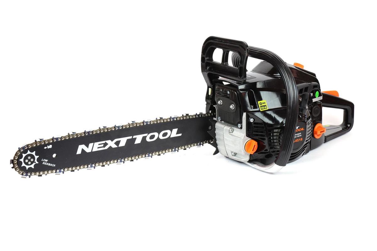Комплектация: бензопила, направляющая шина, цепь пильная, чехол шины, ключ комбинированный, ключ шестигранный, отвертка, емкость для приготовления топливной смеси, руководство по эксплуатации, упаковка.